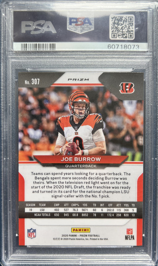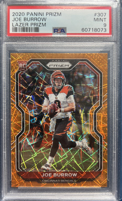 My StoreOriginal price $380.00 - Original price $380.00Original price$380.00$380.00 - $380.00Current price $380.00| /Out of stockJoe Burrow 2020 Panini Prizm Orange Lazer #307 PSA 9 MINT Rookie Card.